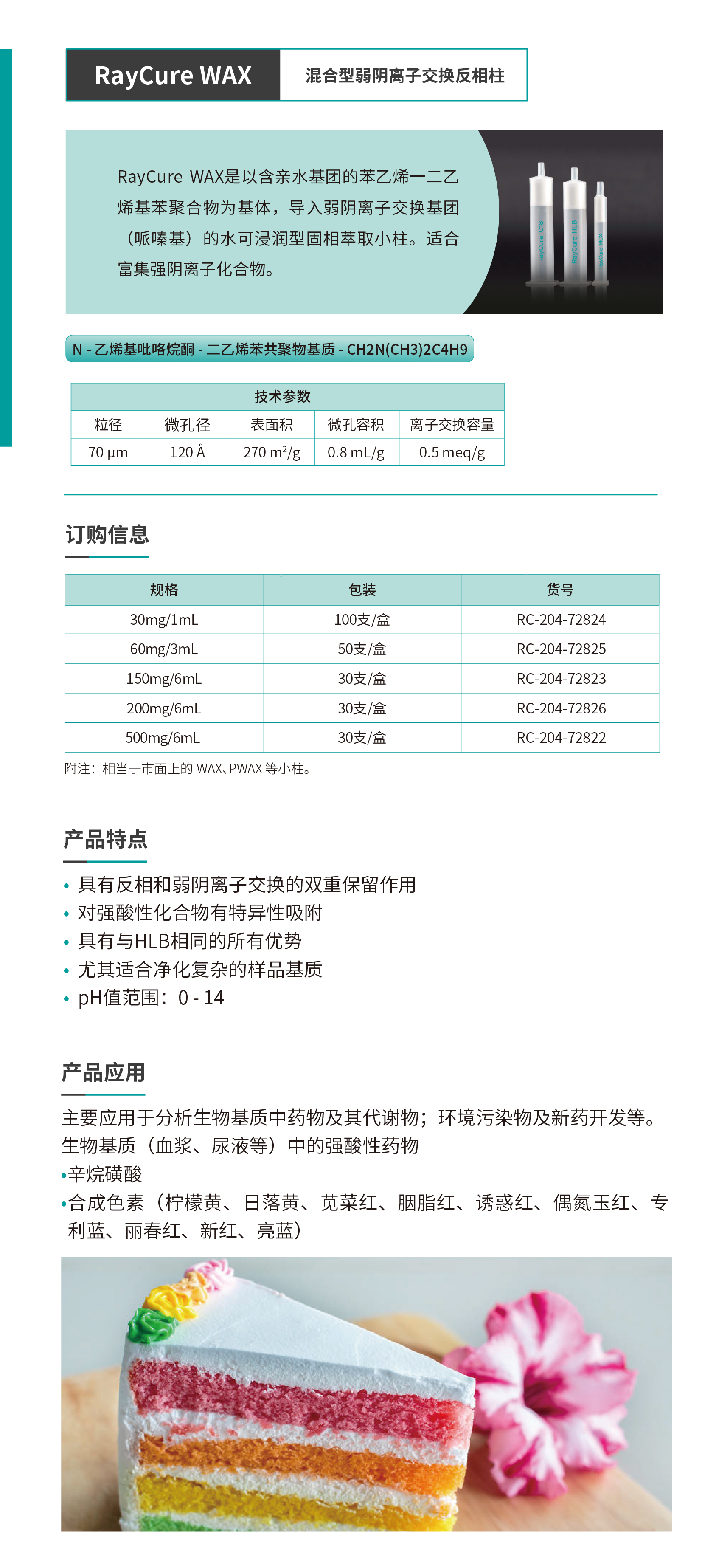RayCure WAX 混合型弱陰離子交換反相柱