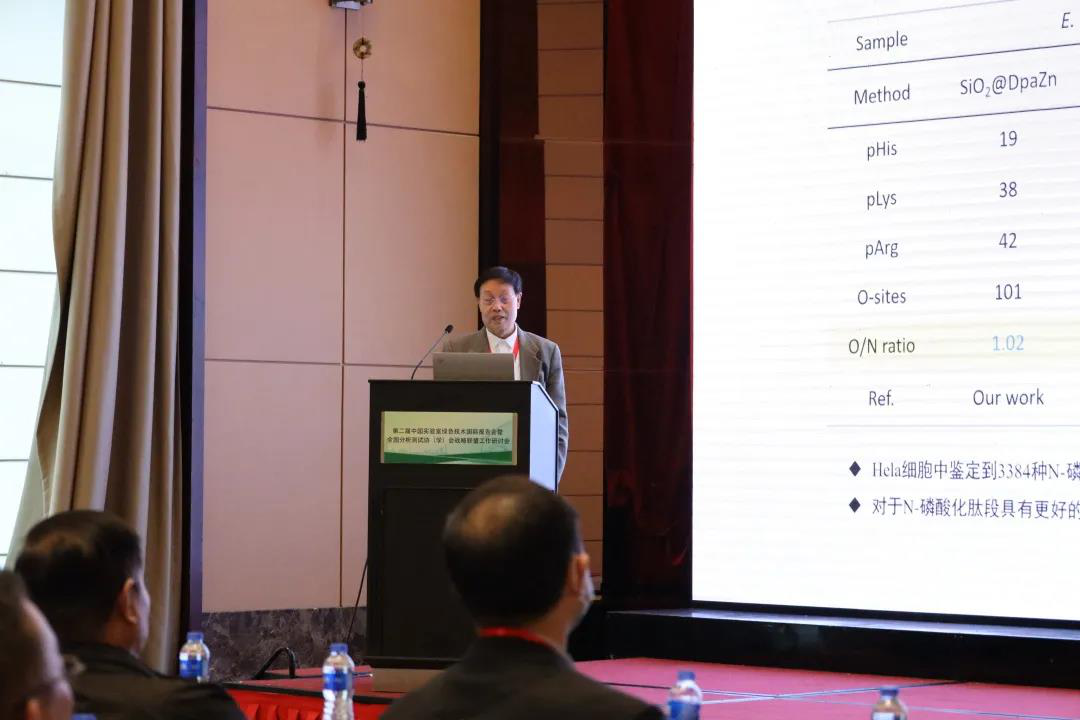 中國科學院大連化學物理研究所張玉奎院士做題為《生命科學中的化學》報告,從生命科學、化學兩大方面闡述化學如何為生命科學提供全新“解題”思路,促進生命科學發展。膜蛋白質疏水性強,在樣品制備過程中難以提取,且酶解效率低,嚴重影響了蛋白質組分析的覆蓋度,在國際上率先采用離子液體溶解膜蛋白,顯著提高了其溶解度;N-磷酸化修飾易水解,難以在強酸條件下實現富集,在弱酸條件下富集組氨酸磷酸化修飾肽段;化學交聯劑助力解析細胞裂解過程中極易破壞、極易解離、細胞中低豐度蛋白質復合物;這些技術在抑郁癥、透析病、胰腺癌臨床應用中發揮重要作用。