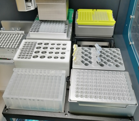 Vitae 100全自動PCR體系構(gòu)建系統(tǒng)具備10個基礎(chǔ)盤位,可從不同規(guī)格的離心管(0.2mL、1.5mL、2mL、5mL等)、試劑瓶、試劑槽中移液至PCR 8連排管、PCR 96孔板、PCR 384孔板及深孔板等;移液精確,減少人工干預(yù)帶來的誤差,保證結(jié)果重復(fù)性和穩(wěn)定性,可應(yīng)用于各種基于PCR技術(shù)的檢測項(xiàng)目。