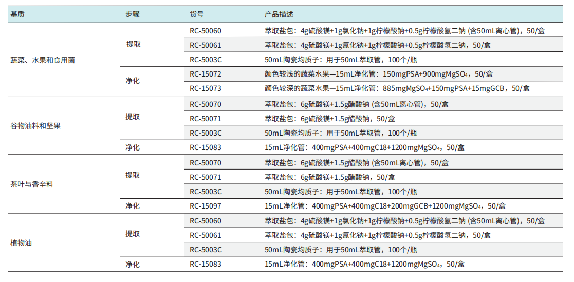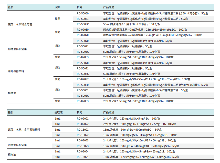 常見植物源性食品農殘檢測之“QuEChERS”法耗材合集