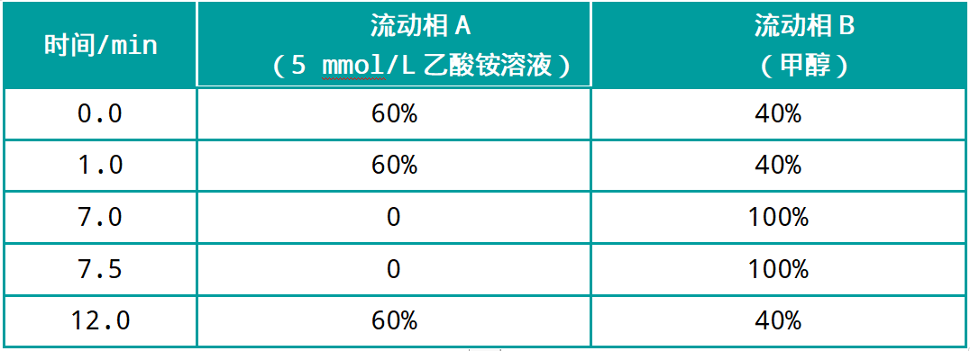 5%氨水-乙腈-水溶液:準確量取 5 mL 濃氨水,轉移入100mL容量瓶,用乙腈-水溶液(7+3)定容至刻度,混合均勻。