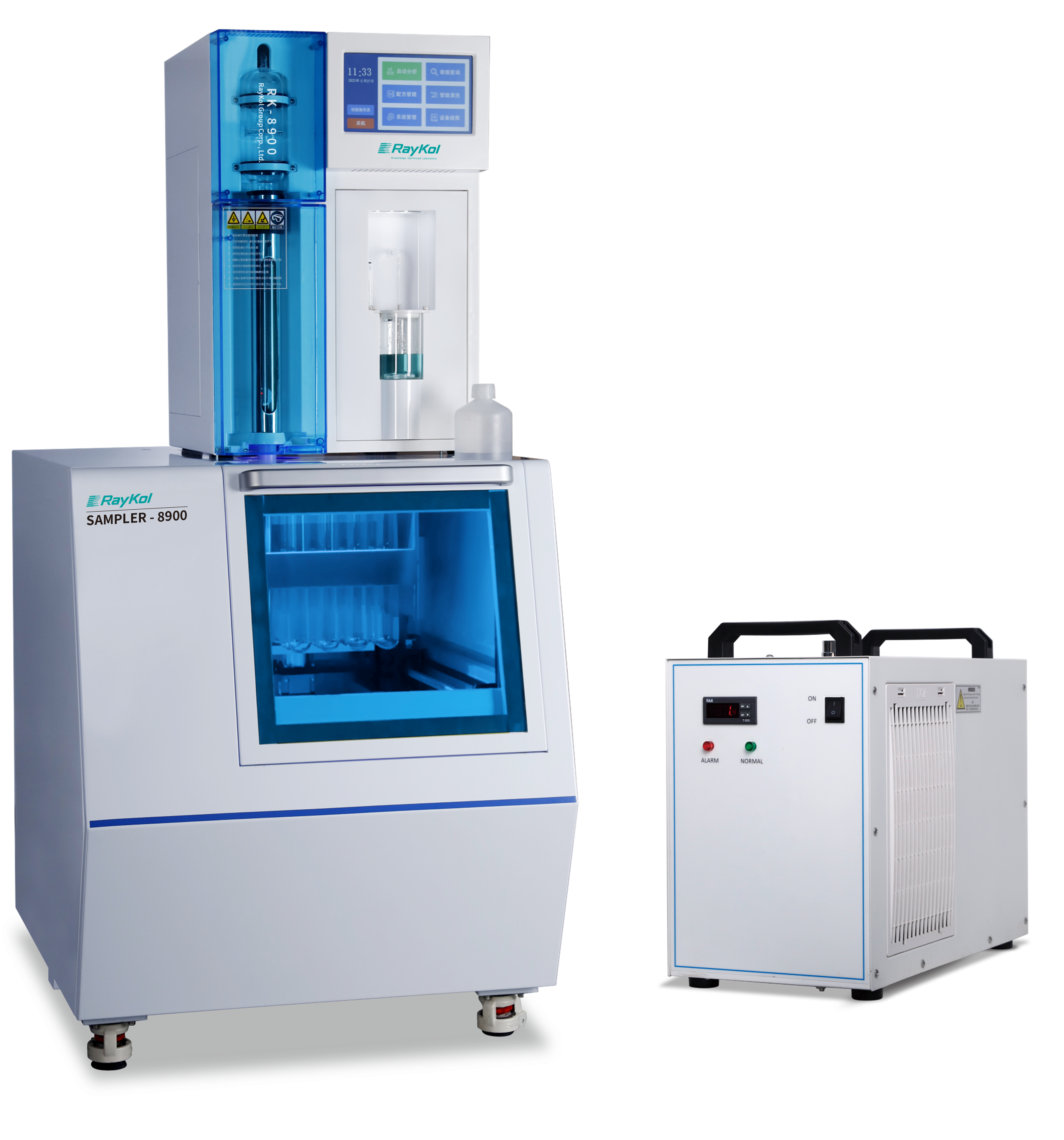 ??萍瘓F推出的RK-8900系列全自動凱氏定氮儀,可配置20位或40位自動進樣器,實驗員只需要在樣品消解完成后把樣品整架放置到進樣器中,儀器依次自動完成樣品的分析和計算,即單個實驗員能在一天內輕松完成至少80個樣品,還能利用等待時間進行其他任務,大大提高了實驗效率。