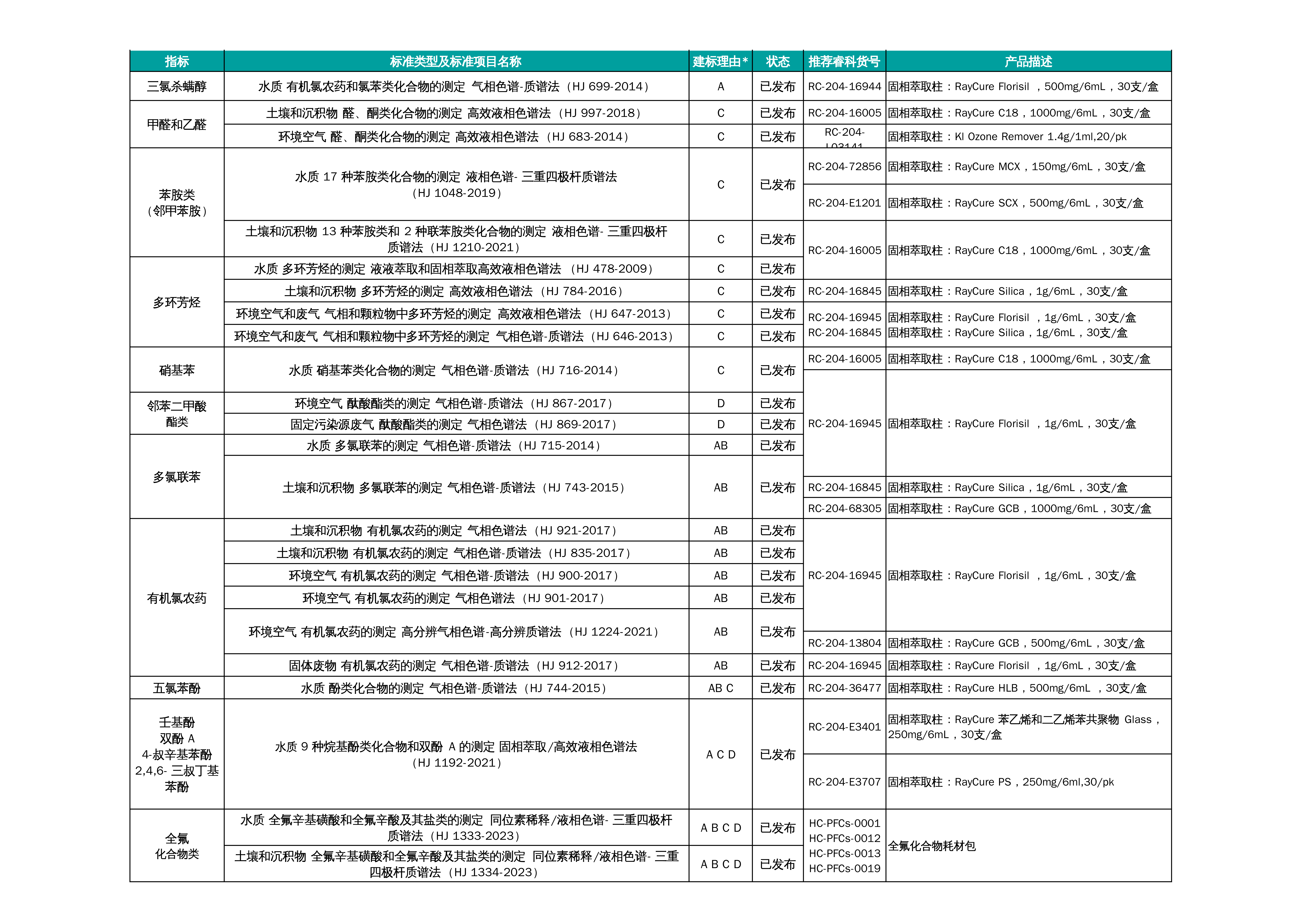 《體系表》中生態環境監測標準編制狀態分為已發布、在研和擬制訂三種。其中,已發布表示標準已發布實施且現行有效,在研表示標準目前正在制修訂,擬制訂表示下一步計劃制修訂。睿科集團依據此,歸納整理了已發布標準的相關配套耗材,供各位老師參考。