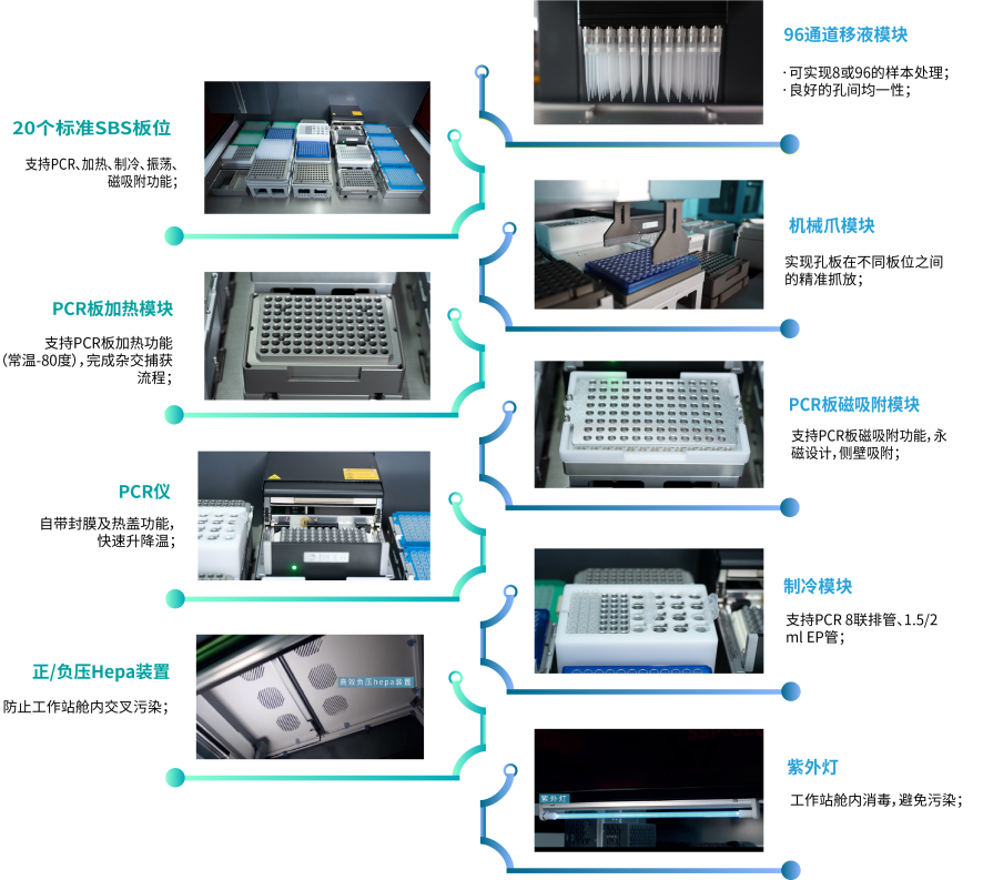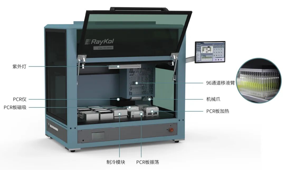 Vitae 180 NGS-96建庫儀適用于高通量(96個樣本/run)的建庫需求,可自動化完成各類文庫構建流程;包含建庫所需要的所有功能模塊(PCR板冷槽、PCR 板加熱模塊、PCR 板振蕩模塊、PCR板磁力架、PCR儀),滿足不同建庫流程的需要。
