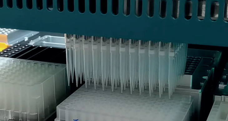 96通道移液頭,一次可處理最多96個樣本,高效完成實(shí)驗(yàn)流程中吸廢等步驟;